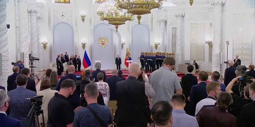 Russian President Vladimir Putin on Sunday presented state awards to workers across the fields of culture, art, science, and technology in the Kremlin.