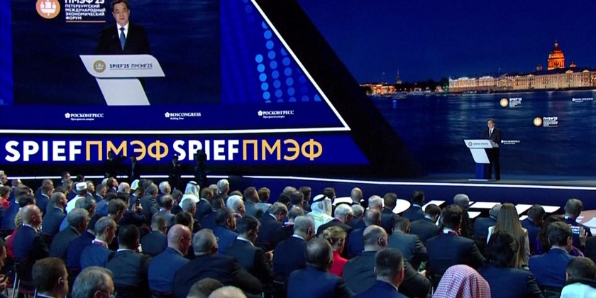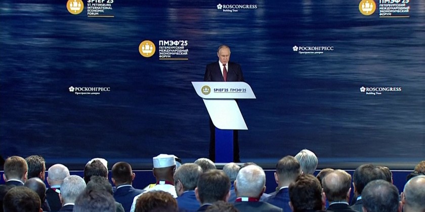 Russian President Vladimir Putin has expressed a willingness to advance technical cooperation with friendly countries in military fields such as the joint development of weapons. Putin spoke at a plenary session of an international economic forum in St. Petersburg on Friday.