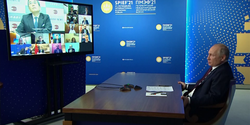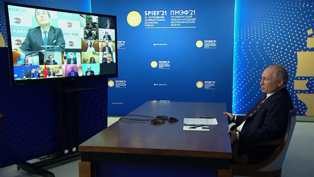 Russian President Vladimir Putin took part in a virtual meeting on Friday with the heads of international news agencies as part of the St. Petersburg International Economic Forum. In response to a question from Japan's Kyodo News, Putin said that Russia was interested in a peace treaty with Japan, amid a dispute of the territorial rights of four of the southernmost Kuril islands which the Soviet Union took during the final days of World War II. And also Answering a question from South Korea's Yonhap News, Putin said that the North Korean nuclear program is in the centre of the world's attention and that Russia is against the expansion of weapons of mass destruction.
