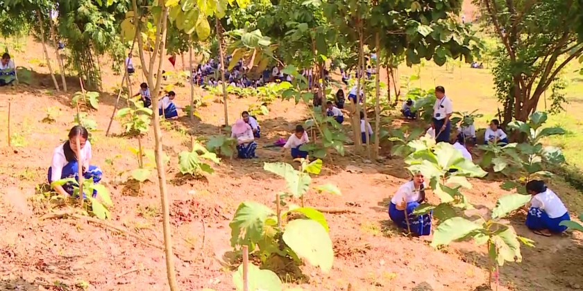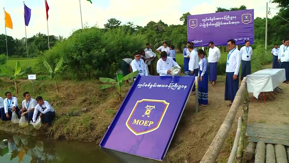 The Ministry of Electric Power held a ceremony putting 120,000 fingerlings and caring and nurturing cultivated teakwood trees, rice crops, and various fruit and vegetable plants to ensure their growth and sustainability. The ceremony was attended by Union Minister U Nyan Tun, Deputy Minister U Aye Kyaw, Directors General, Heads of Departments, officials and staff.