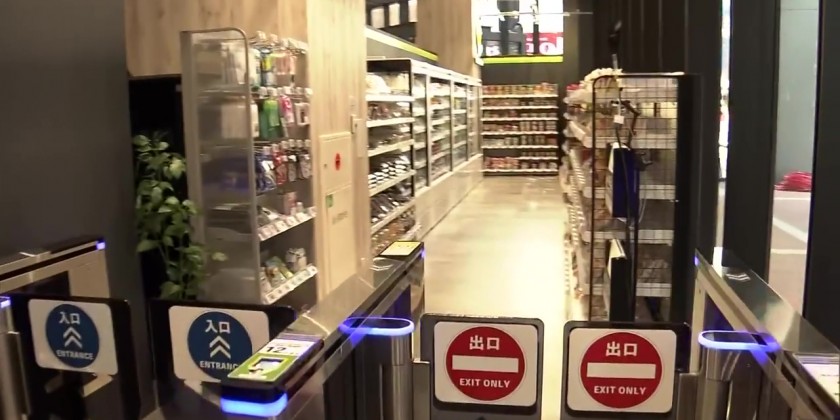 This gives them a QR code. When entering the section, they let a scanner read the code. Payment takes place automatically through a credit card registered with the app. Thirty-five cameras in the celling and weight sensors embedded in the store's shelves identify the products being sold.