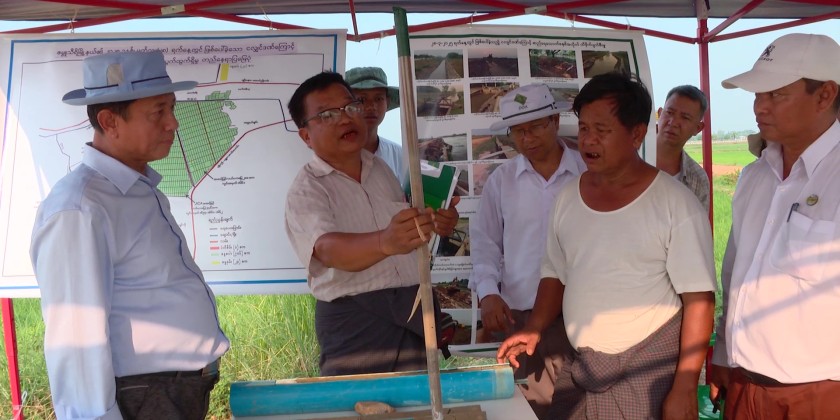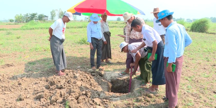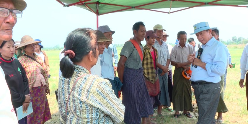 He also met with the farmers and instructed for systematic utilization of irrigated water in quake-hit farmlands, along with the implementation of proper output system. The Deputy Minister later proceeded to the paddy field in Nyaung Tone Aing Village-tract which was affected by the earthquake, with sand layer emerged on the surface.