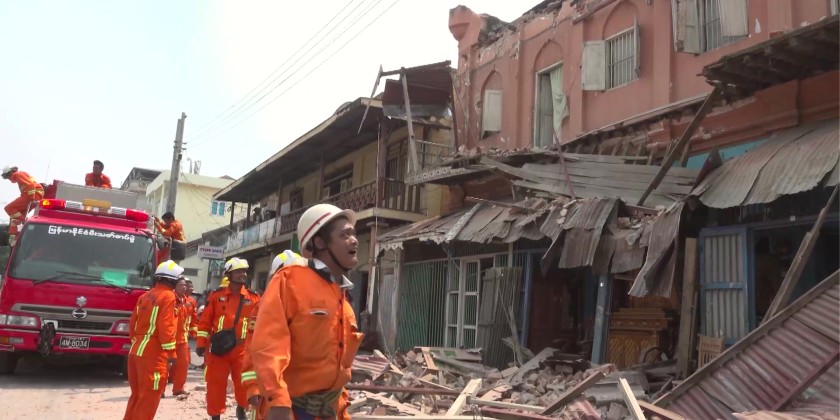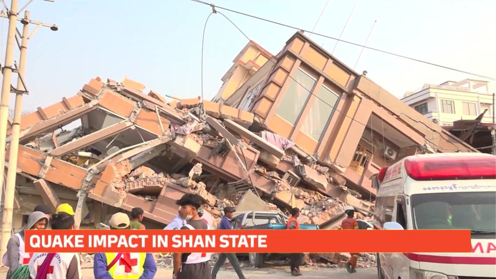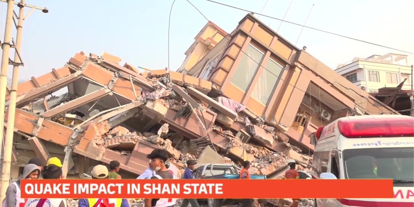 Due to the disaster, 5-storey Hotel Aung Pan was collapsed, and the injured individuals are sent to the Station Hospital and No.2 Defence Services Hospital to provide medical treatment.