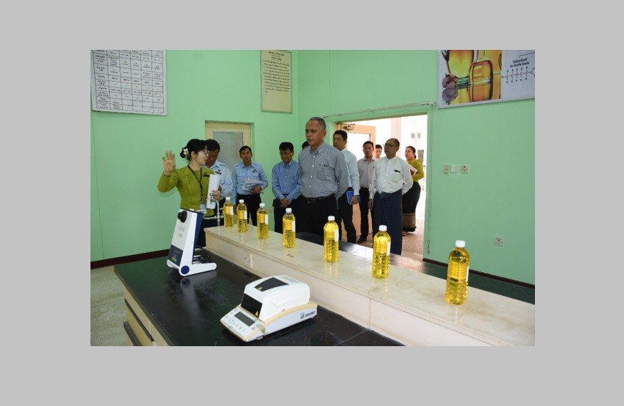 Union Minister for Commerce U Aung Naing Oo visited Commodity Testing and Quality Management (CTQM) Center in Hlegu Township of Yangon Region on Saturday. He inspected the quality testing process for crops and edible oil and the lab equipment.