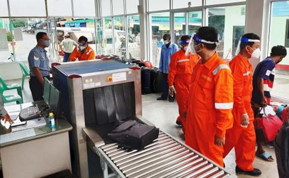 Officials from departmental cooperative teams and health department conducted medical checkups to Myanmar seafarers and put them under 21-day hotel quarantine.