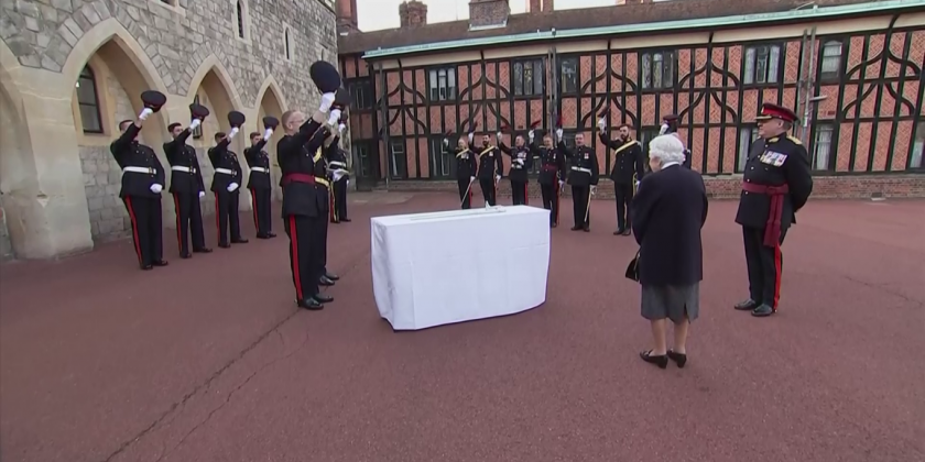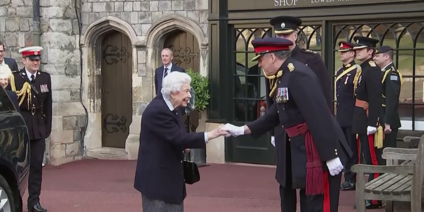 The troops were guarding her Windsor Castle home and she spoke with the on-duty soldiers of the 1st Reginment of the Royal Canadian House Artillery at the royal residence.