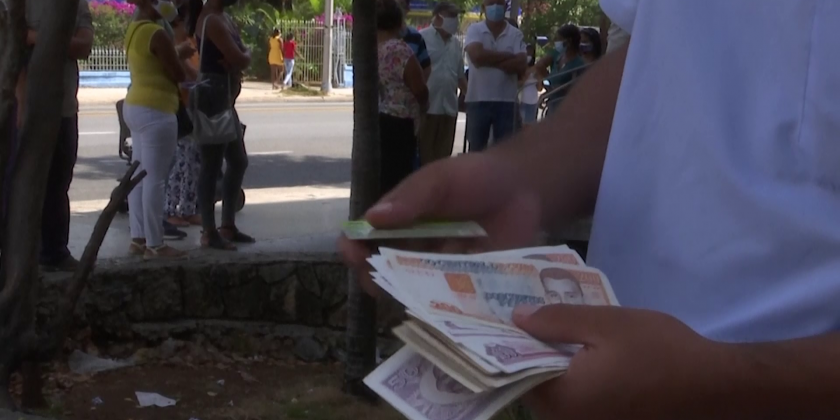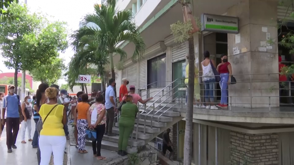 Cubans formed long queues outside banks on Friday after the government's announcement it will soon no longer accept dollar cash deposits. The Central Bank of Cuba (BCC) announced that the measure would come into effect from June 21. The president of the BCC, Marta Wilson, said the decision was due to having an "accumulation" of dollar bills it cannot place in foreign financial entities due to the embargoes imposed on the island, especially on its financial sector. Shortages, queues, price increases, and the black market have affected Cubans more than ever these past months. The national GDP decreased by 11% in 2020. The official rate puts the dollar equivalent to 24 Cuban pesos, but in practice, the state does not sell dollars, so the only way to acquire some is on the informal market. This exchange rate reached more than 60 Cuban pesos before the announcement.
