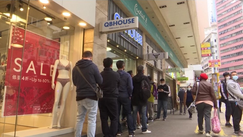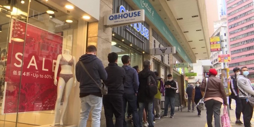 Long queues formed outside a hair salon in Hong Kong on Wednesday following the announcement of the city's newest restrictions to tackle the latest spread of the coronavirus.