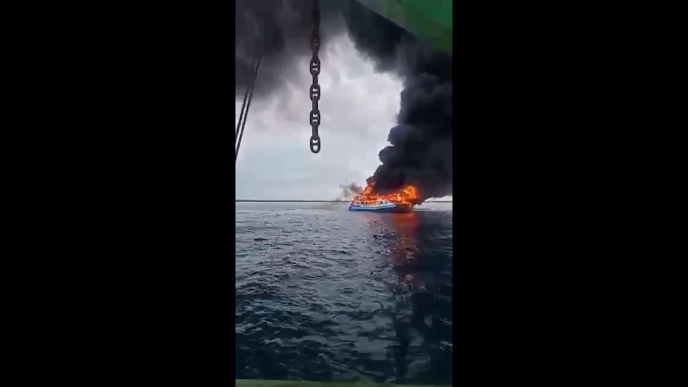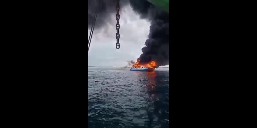A ferry carrying more than 130 people caught fire in the northeastern Philippines on Monday. The fire rapidly spread from the engine room to the upper passenger deck of the M/V Mercraft 2 while it was approaching to a port.