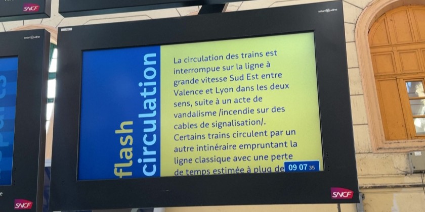 Rail traffic is disrupted at Marseille Saint-Charles station following an act of vandalism on the high-speed line between Lyon and Avignon, according to SNCF, which only expects a return to normal from Tuesday in the South-East of France. The incident forced the cancellation of several TGV services and caused extensive delays across the southeastern rail network. Authorities confirmed that the damage was deliberate, describing it as an act of arson.
