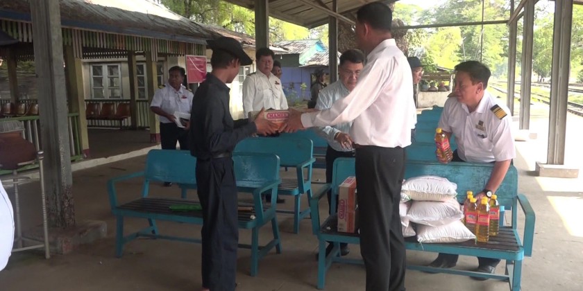 They took a train ride from Nay Pyi Taw Railway Station, and observed the stations along the route to Taungoo Station. During the inspection, the General instructed for clearing of collapsed stations while expediting the repair works and reconstruction of the stations through designated procedures. During the tour, the Deputy Prime Minister met with the staff families and gave words of encouragement.
