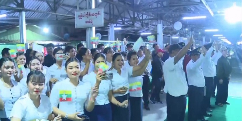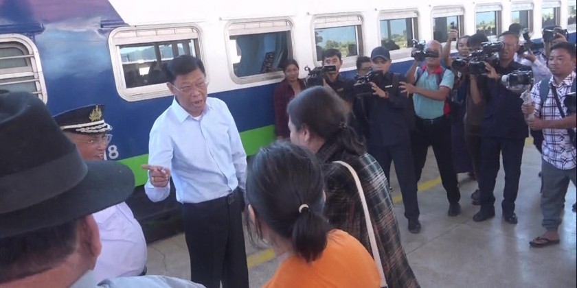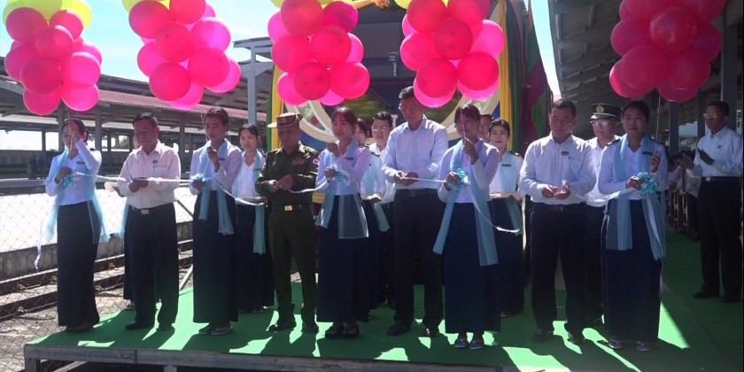 The ceremony took place at Nay Pyi Taw Railway Station, attended by Union Minister for Transport and Communications U Mya Tun Oo, deputy ministers, Nay Pyi Taw Council members, officials, invited guests, and local residents.