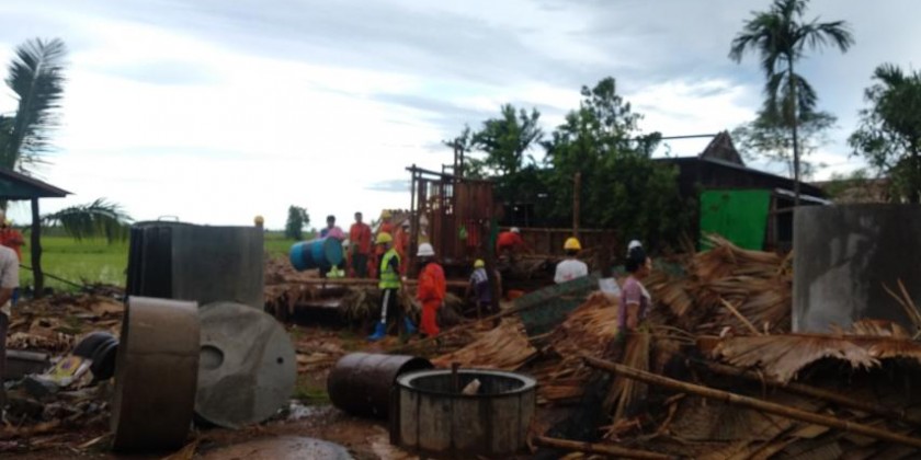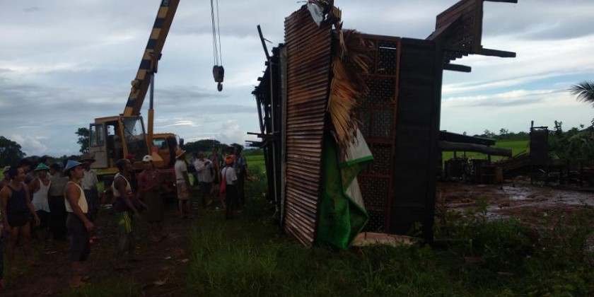 Heavy rain and strong winds hit ZoteTote Village of Belin Township in Mon State on Wednesday evening.