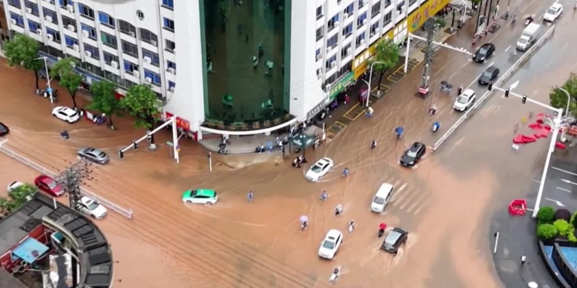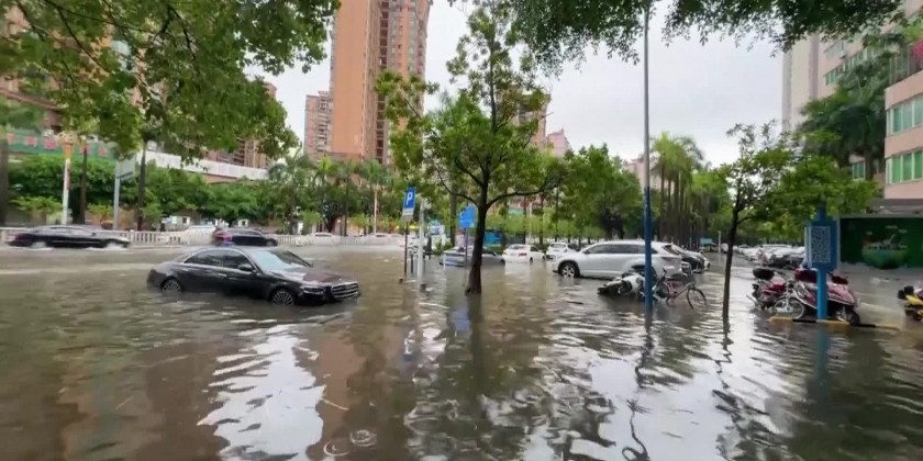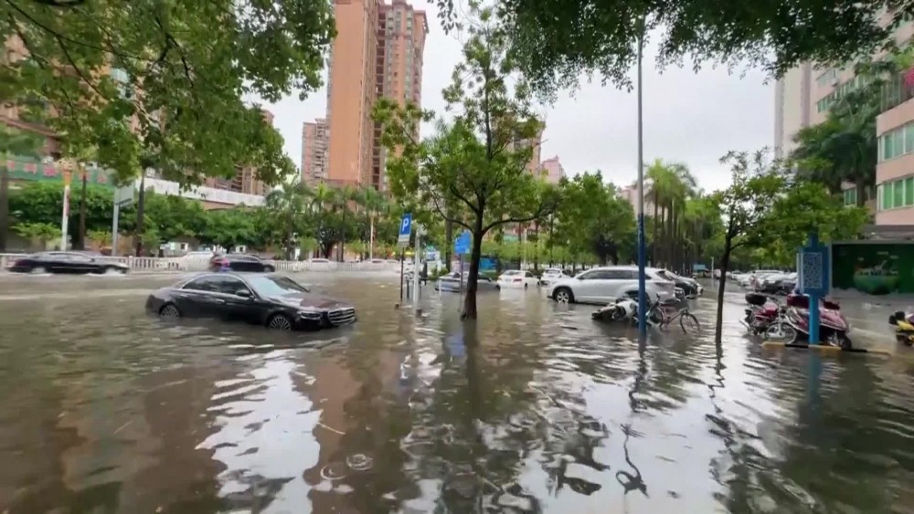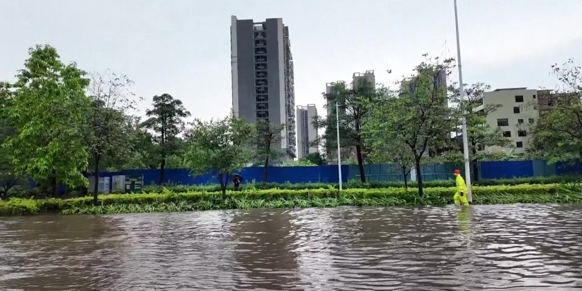 On Friday, downtown Qingyuan City was battered by strong winds and torrential rain. The local meteorological department had issued a red alert for rainstorms and warned against thunderstorms and strong winds. The downpour flooded low-lying areas, blocking roads and trapping residents.