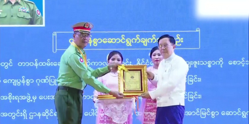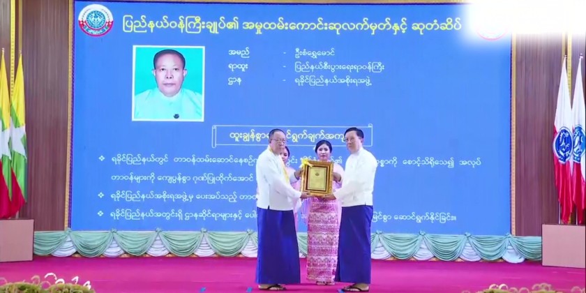 Afterwards, Executive Chief U Aung Lin Dwe presented awards to recipients of the State Chief Minister's Good Civil Service Certificate and Medal for the Rakhine State Day commemoration. Then, Union Ministers and the State Chief Minister presented certificates and honorary awards to recipients of the State-Level Management Excellence Medal (First Class), recipients of the State Chief Minister's Good Civil Service Awards, recipients of the Outstanding Trainee Award, and recipients of the State-Level Excellence Awards.