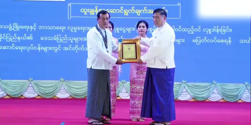 Following that, Executive Chief U Aung Lin Dwe warmly met and greeted the recipients of the honorary awards and certificates of honor, as well as the attendees, and presented cash awards to the Drug and Bugle Corps and Pom Pom dance group. In the afternoon, Executive Chief U Aung Lin Dwe, together with the State Chief Minister, met with local elders and entrepreneurs at the State Government Guest House and held frank and open discussions regarding regional stability, development, and progress activities.