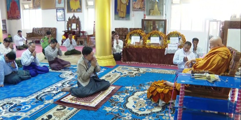 Later, the Executive Chief and officials visited and paid respects to the presiding Sayadaw of the World Buddhist Mission, Maha Jeyya Siddhi Ahdhitthan Kyauk monastery, and the Sayadaw of the Shwe Zedi Monastery. They offered offertories to the Sayadawgyis. In the evening, the Executive Chief, accompanied by officials, attended the 51st Anniversary of Rakhine State Day Honor Dinner held at the Khaing Thazin Hall. They dined together and watched and encouraged the cultural performances and songs presented by the traditional cultural groups of Rakhine State.