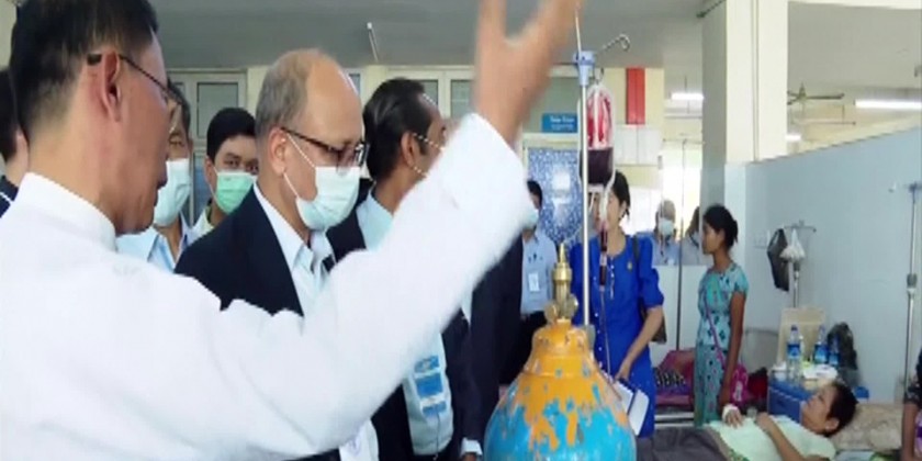 Later, they visited Thet Kal Pyin IDP, gave words of encouragement and inspected providing healthcare service. In the evening, the Union Minister and diplomatic corps attended the dinner hosted by the Chief Minister at the Sittwe Hotel.