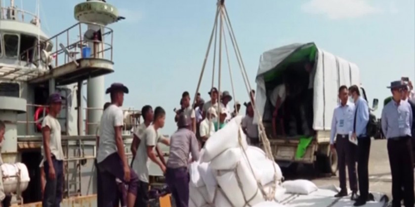 Afterward, the Union Minister and diplomatic corps visited Saint Mark's Cathedral in May Yu Street in Sittwe Township, Sittwe Multipurpose Project Port where the relief items transporting and distributing, 500 bed- Sittwe General Hospital, historic U Ye Kyaw Thu monastery, Thakyamuni Ordination Hall and observed the rehabilitation and reconstruction works.
