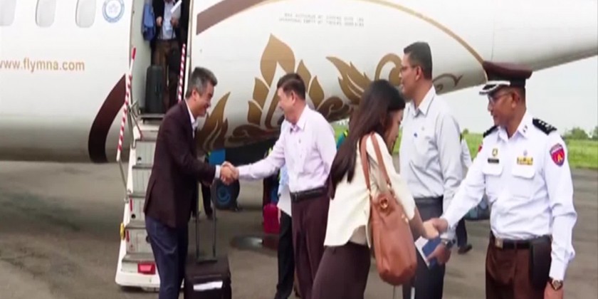 Vice Chair (1) of Rakhine State Stability, Peace and Development Work Coordination Committee Union Minister for the Ministry (2) of Union Government Office U Ko Ko Hlaing together with the heads of mission of the embassies based in Myanmar and diplomats left Nay Pyi Taw by Air and arrived at Sittwe in the morning on 1st of September.