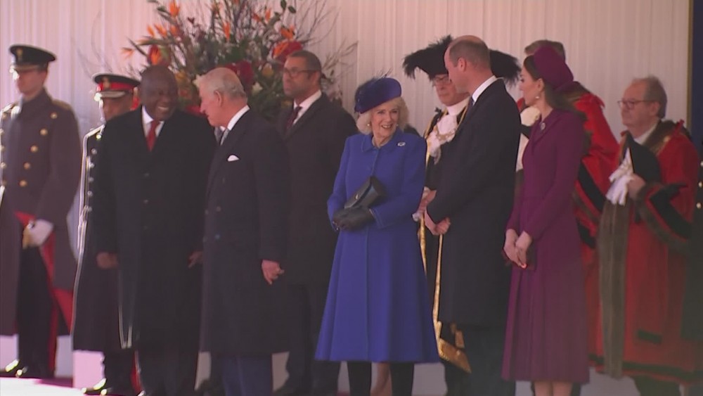 Britain's King Charles III welcomed South African President Cyril Ramaphosa to London on Tuesday in the first state visit of his reign.Ramaphosa, who arrived at the welcome ceremony with the Prince and Princess of Wales, William and Catherine, is in the UK for three days of high-level talks.