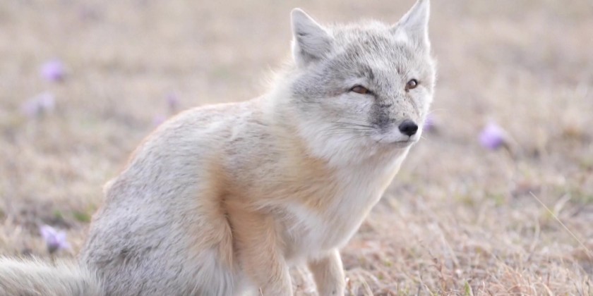 Corsac foxes rarely move in pairs, and it was listed as endangered by the International Union for Conservation of Nature in 2008. The animal generally measures 50 to 60 centimeters in the body length and weighs about 2 to 3 kilograms, making it the smallest fox species in China. It mainly inhabits grasslands, deserts and semi-deserts, feeding mainly on rodents.