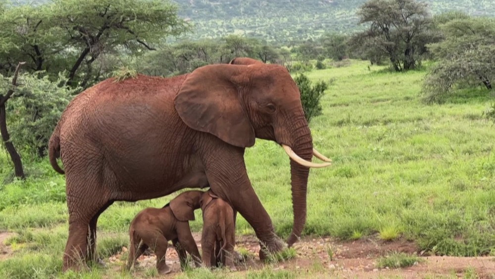 An elephant has given birth to a set of twins in Kenya, a conservation organisation, Save the Elephants said on Friday. The twins, both female, were born in the Samburu National Reserve in northern Kenya.