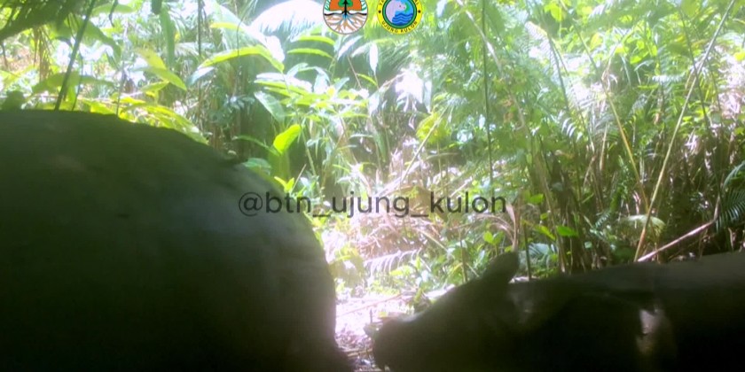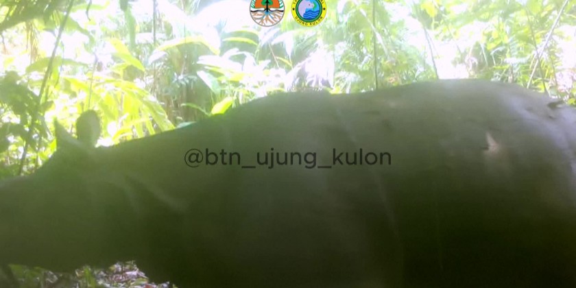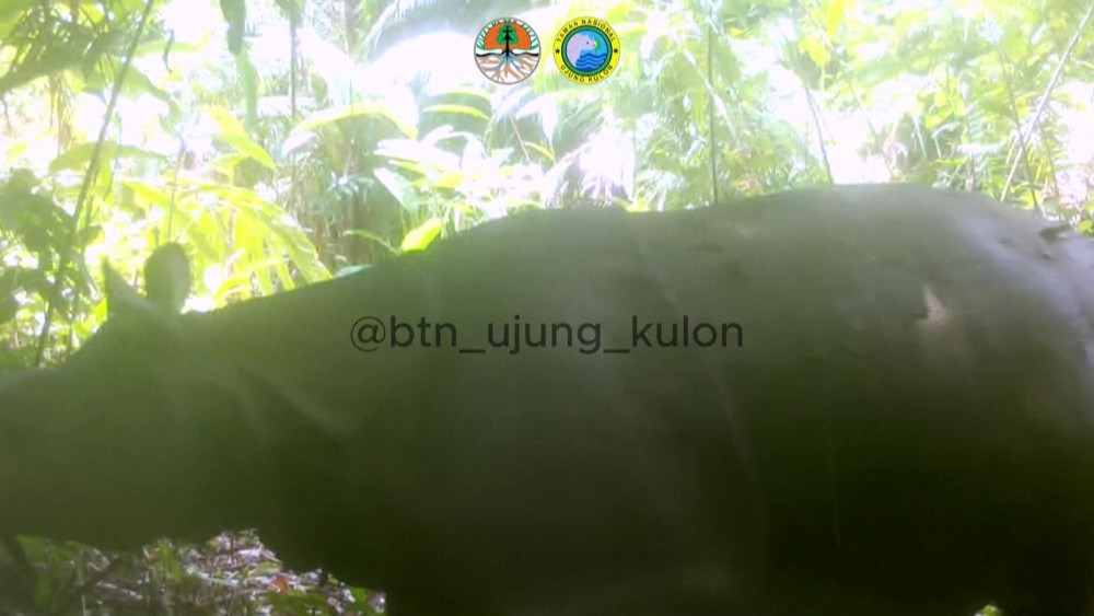 The calf, estimated to be between three and five months old, was spotted in footage captured last month by one of 126 camera traps installed in Ujung Kulon National Park on Java island.The mammal, whose sex remains unknown, was seen walking with its mother inside the park, the last remaining wild habitat for Javan rhinos.