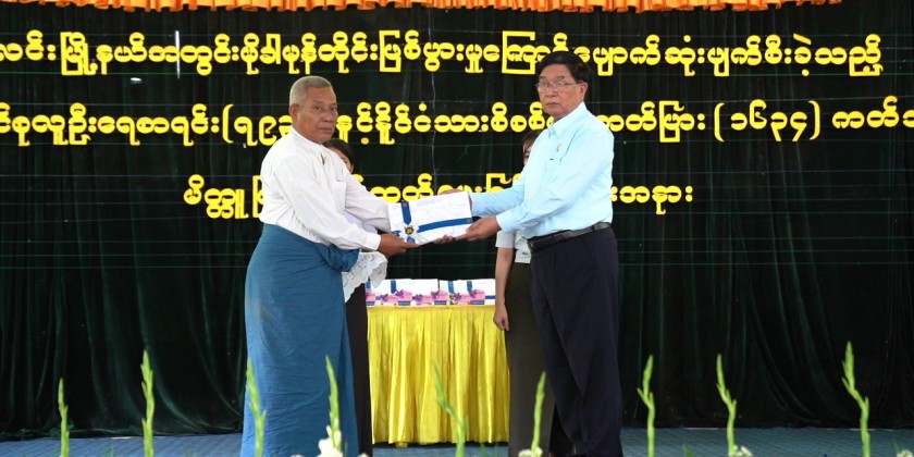 The ceremony of handing over the reissued National Scrutiny Cards (NSC) and household list form (66/6) to the households which lost NSC and household list due to the Cyclone MOCHA in Salin Township, Minbu District of Magwe Region was held at No.1 Basic Education High School in Salin Township on 21st July with the attendance of Magwe Region Chief Minister U Tint Lwin, Regional Ministers and concerned officials.