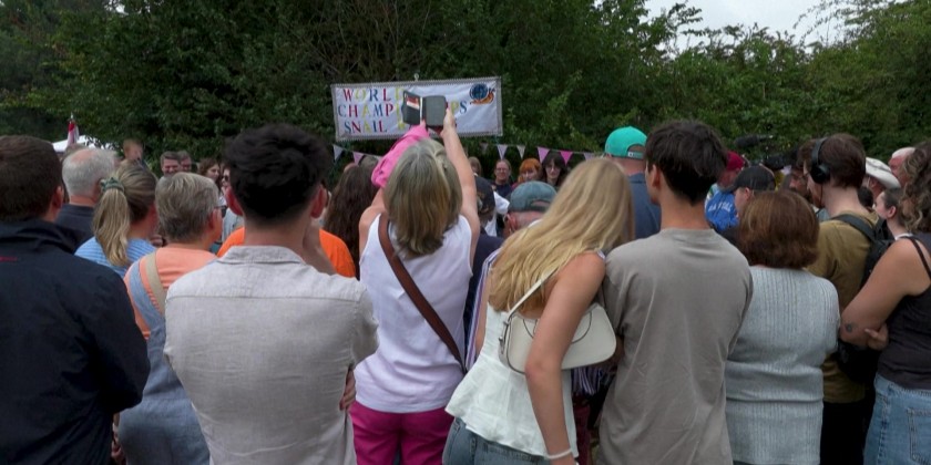 A village in Norfolk, England, hosted the 2025 World Snail Racing Championships during which dozens of entrants are seen off by a rented snail called Bilbo Sluggins. The tournament dates back to the 1960s with contestants sent off with the starting announcement of "Ready. Steady. Slow".