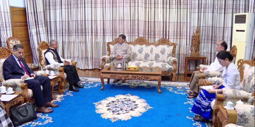 Union Minister for Foreign Affairs U Than Swe received Ambassador of India to Myanmar Mr. Abhay Thakur at the Ministry of Foreign Affairs in Nay Pyi Taw on 26 August.