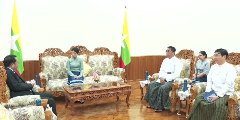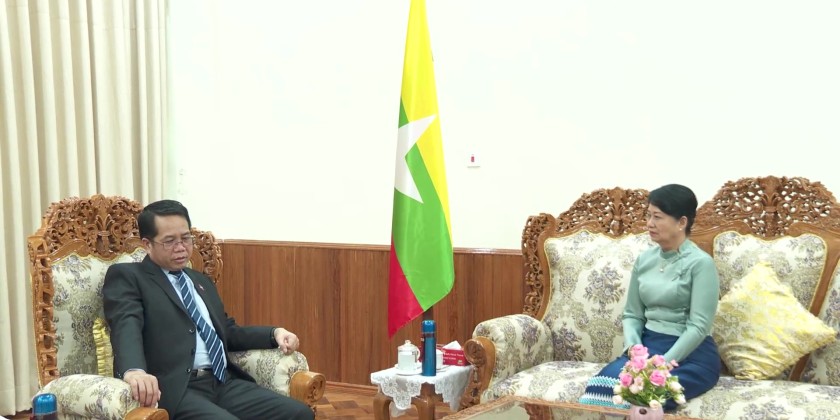 Union Minister for Education Dr. Chaw Chaw Sein received Mr. Bounphieng CHANTHAVONG, Ambassador Extraordinary and Plenipotentiary of the Lao People's Democratic Republic to Myanmar, at the reception hall of Office No. 13 of the Ministry of Education in Nay Pyi Taw on the 5th of January.