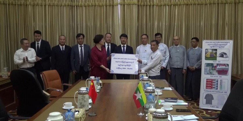Following the meeting, the China Arts and Crafts Association donated supplies valued at 700,000 Chinese yuan to flood-affected victims in Myanmar. The Permanent Secretary of the Ministry received the donation and presented a certificate of honor in recognition of this generous support.