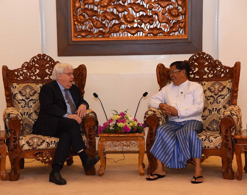 U Than Swe, Deputy Prime Minister and Union Minister for Foreign Affairs received the delegation led by Mr. Martin Griffiths, Under-Secretary-General for Humanitarian Affairs and Emergency Relief Coordinator- the United Nations Office for the Coordination of Humanitarian Affairs (UNOCHA) at the Ministry of Foreign Affairs in Nay Pyi Taw at 10 AM on 15th August 2023.