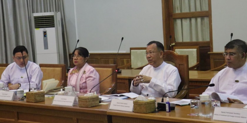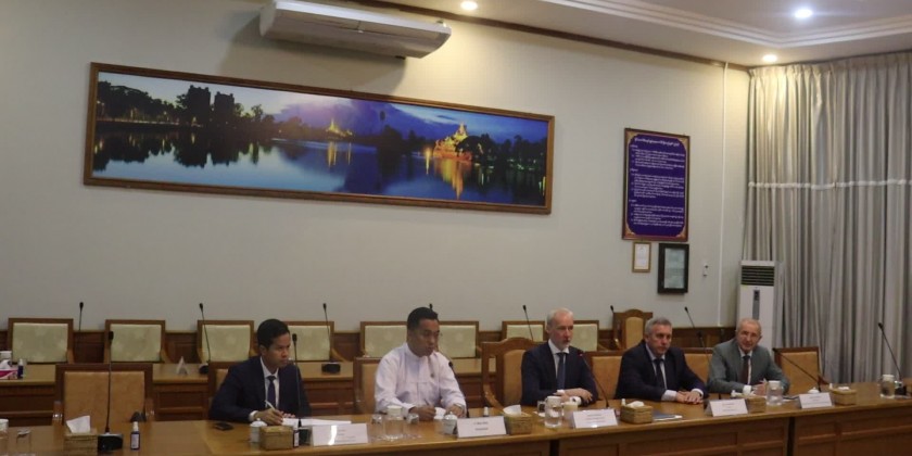 Union Minister for Investment and Foreign Economic Relations Dr. Kan Zaw received the delegation led by Mr. Alexander Borodich, Founder and Managing Partner of Universa Global, Moscow, the Russian Federation at Office No. 1, Nay Pyi Taw, in the morning of October 12, 2023.