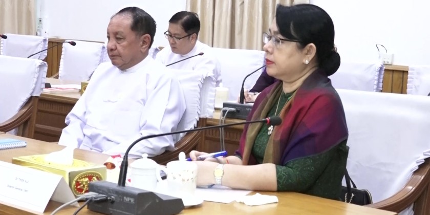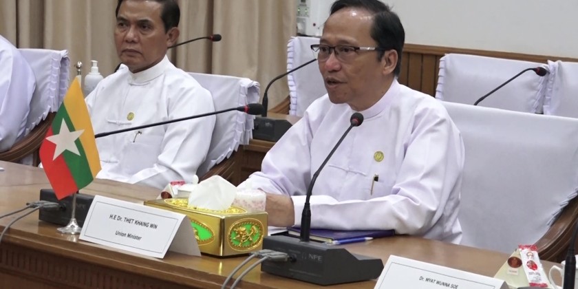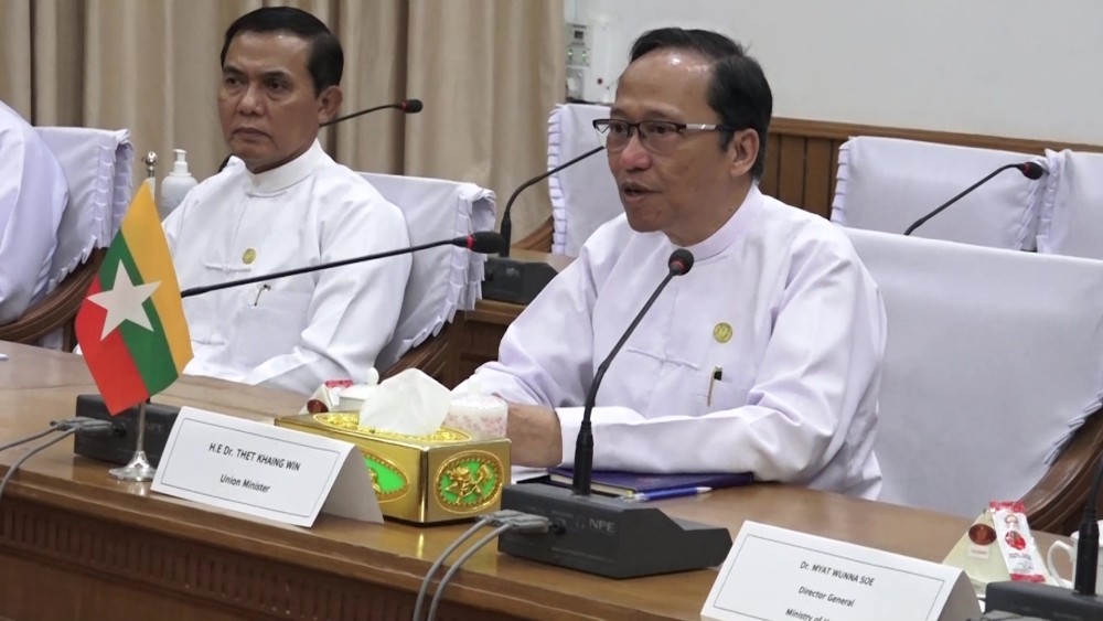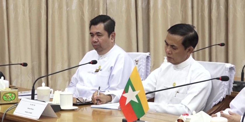 Union Minister for Health Dr. Thet Khaing Win received a delegation led by Mr. Andrei Travnikov, Governor of Novosibirsk Region, Russian Federation, at the meeting hall of the Ministry in Nay Pyi Taw on November 3.