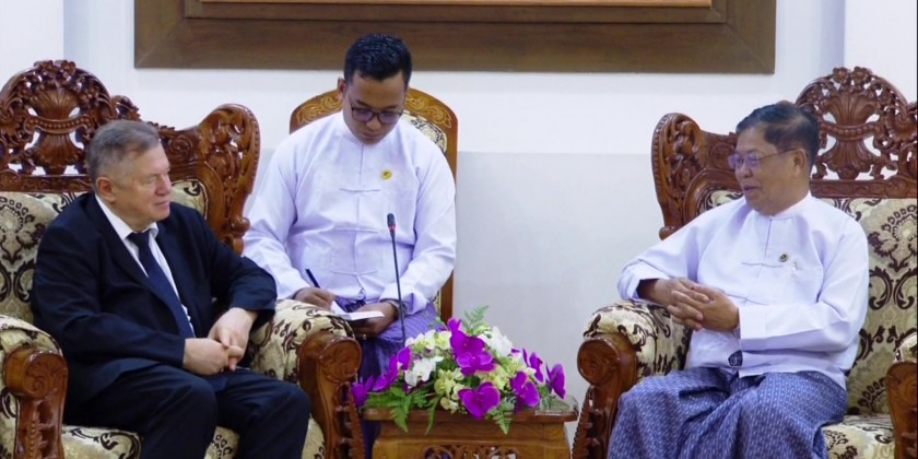 During the meeting, they discussed the matter on enhancement of cooperation between Myanmar and Eurasian Economic Union (EEU/EAEU) member countries in the sectors of trade, investment, business to business, people to people contact and so on. Also present at the meeting were senior officials from the Ministry of Foreign Affairs and the members of the delegation headed by H.E. Mr. Sergey Glazyev.