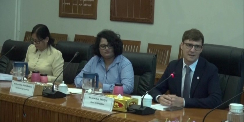 Union Minister for Legal Affairs and Union Attorney General Dr. Thida Oo received Mr. Arnaud de Baecque, Resident Representative of the International Committee of the Red Cross (ICRC) and Ms. Samindika Dilani Elkaduwe, Legal Adviser at ICRC on October 23rd at the Ministry in Nay Pyi Taw.