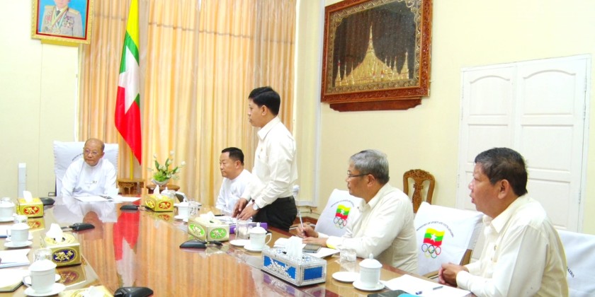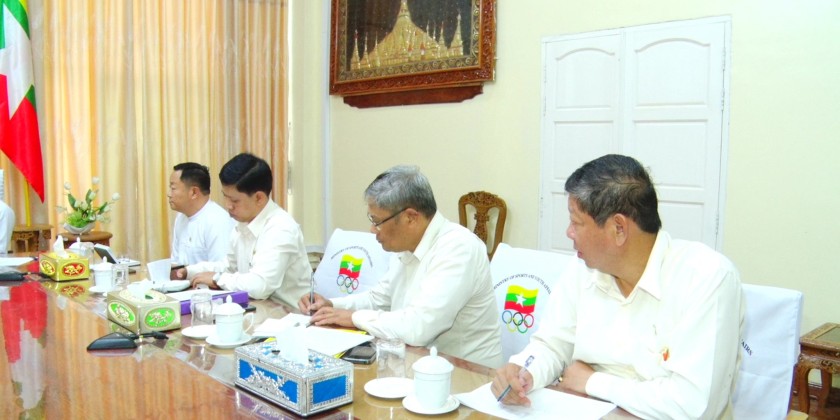 The Chairman of Myanmar Olympic Committee, Union Minister for the Ministry of Sports and Youth Affairs and the Ministry of Hotels and Tourism, Jeng Phang Naw Taung met with the President of the Myanmar Equestrian Federation, U Pyone Maung Maung and members at the meeting hall of the Ministry in Nay Pyi Taw on September 4.