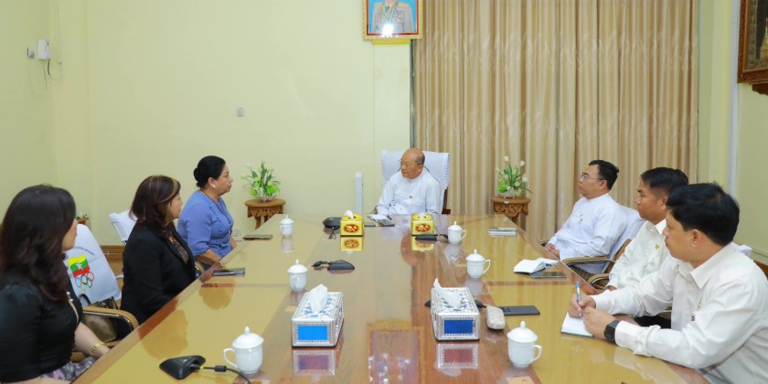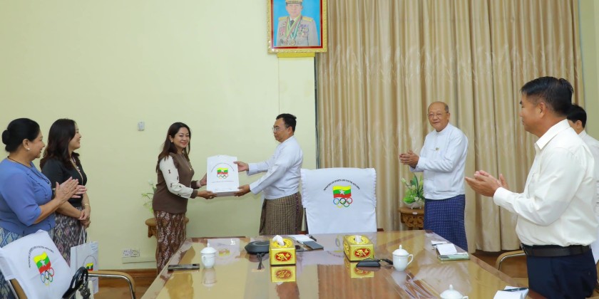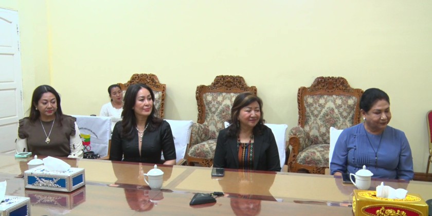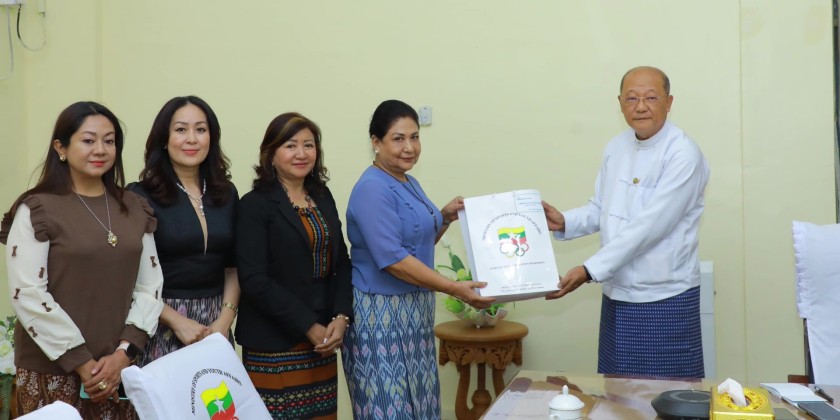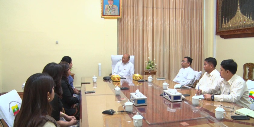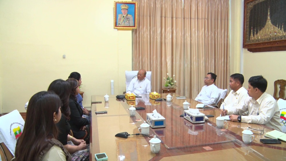 First, officials from the Myanmar Women's Sports Federation presented and discussed various matters. They explained that officials from their federation will travel to Thailand to support and cheer on the athletes at the upcoming 33rd Southeast Asian Games, aiming for Myanmar's sports success and to boost the morale of female athletes.