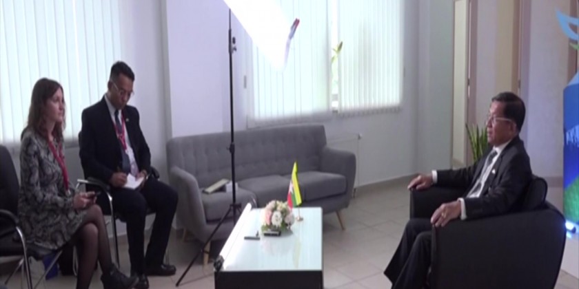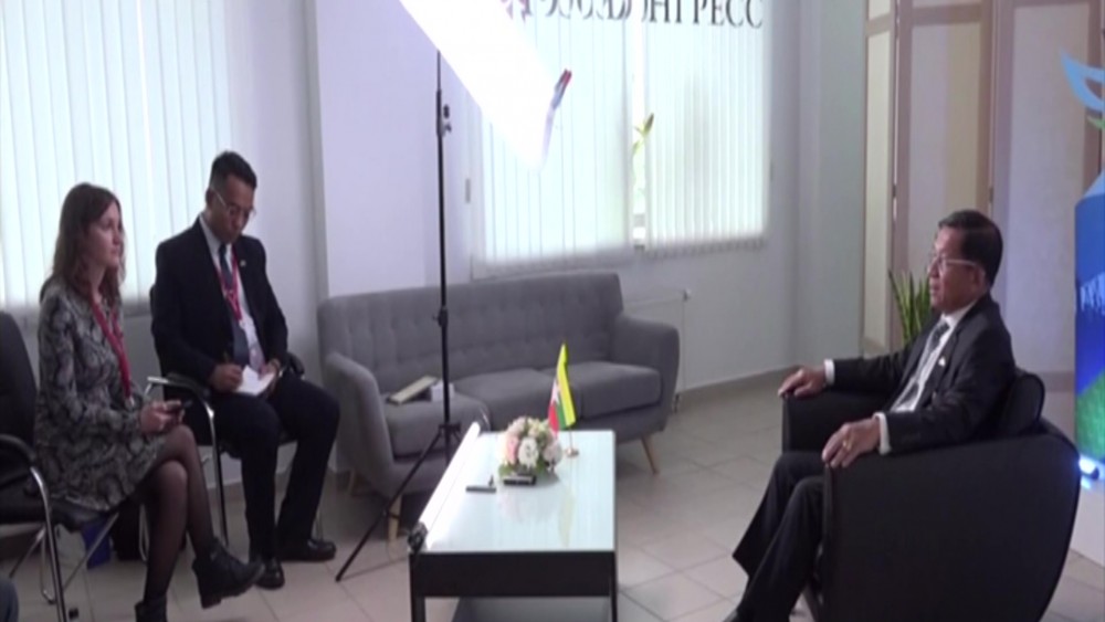 The Chairman of the State Administration Council Prime Minister Senior General Min Aung Hlaing currently in Russia Federation to attend the 7th Eastern Economic Forum-2022 received the special reporter of Rossiya Segodnya News Agency (RIA) Ms. Kukushkina Tatiana at Far Eastern Federal University (FEFU), Vladivostok in the morning on September 6 and answered the questions raised by the reporter.