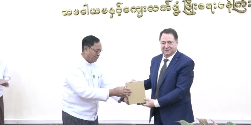 During the meeting, Union Minister U Hla Moe and Mr. Sergey Shatirov of the Roscongress Investment Fund openly exchanged views and discussed matters related to the natural fertilizer factory construction project, a Russia-Myanmar cooperation initiative, the status of signing MoUs for projects jointly implemented by the Ministry of Agriculture, Livestock and Irrigation, the Ministry of Cooperatives and Rural Development and the Roscongress Investment Fund, the status of trial cultivation of nine sunflower varieties provided by Russia through agricultural cooperative societies, the status of efforts to produce foliar spray fertilizers and matters related to commencing the natural fertilizer factory construction work in December and completing the factory within one year, it’s learnt.
