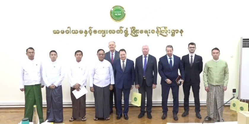 Union Minister for Cooperatives and Rural Development U Hla Moe received a delegation led by Mr. Sergey Shatirov, Board Member of the Russian Federation's Roscongress Investment Fund, at the Ministry in Nay Pyi Taw in the morning on December 3.