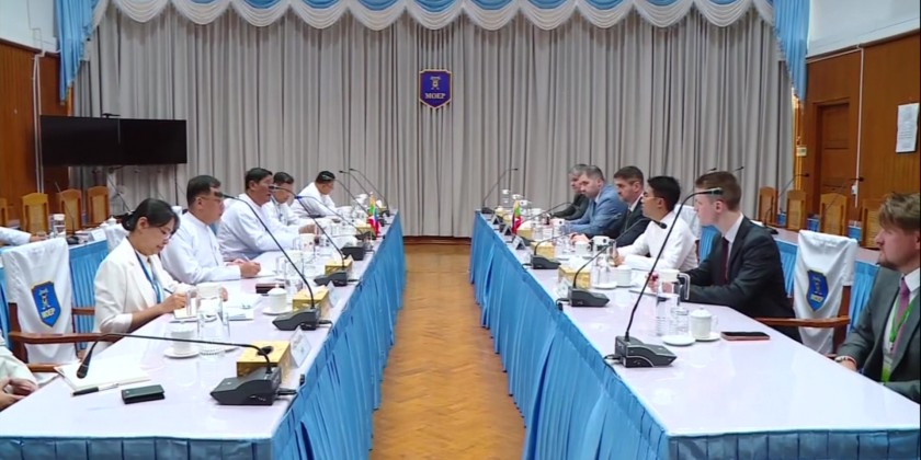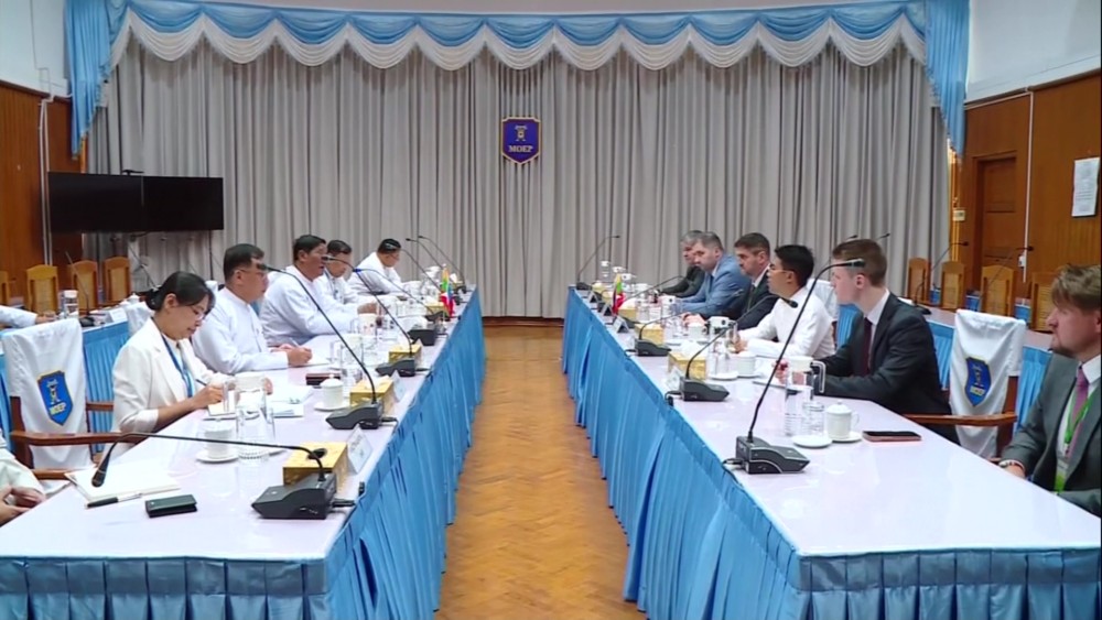 During the meeting, both parties engaged in a friendly and open discussion regarding ongoing cooperation between Myanmar and Russia in the electric power sector. Current status and future progress of joint projects. The meeting was also attended by Deputy Minister U Aye Kyaw, departmental heads, and representatives from various Russian cooperative organizations.