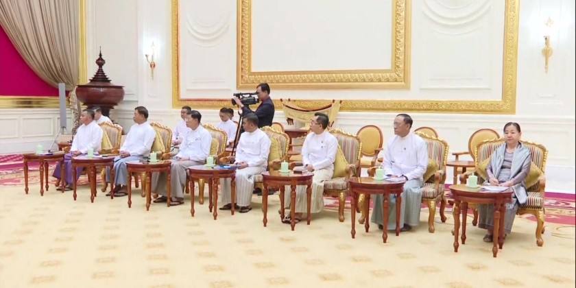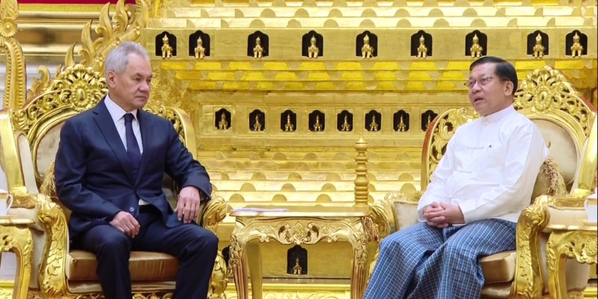 The Acting President of the Republic of the Union of Myanmar Chairman of the State Security and Peace Council, Senior General Min Aung Hlaing, received a delegation led by Mr. Sergey Shoigu, Secretary of the Security Council of the Russian Federation, in the morning of February 3 at the Credential Hall of the Office of the National Defense and Security Council.