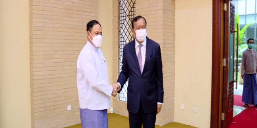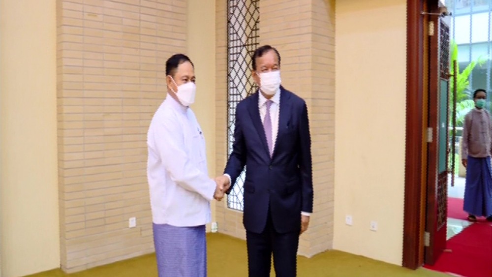 Member of the State Administration Council Union Minister at the Union Government Office (1) Chairman of the National Solidarity and Peacemaking Negotiation Committee received the delegation led by Special Envoy of the ASEAN Chair on Myanmar Deputy Prime Minister of Cambodia and Minister for Foreign Affairs and International Cooperation Mr Prak Sokhonn Friday morning in Nay Pyi Taw.