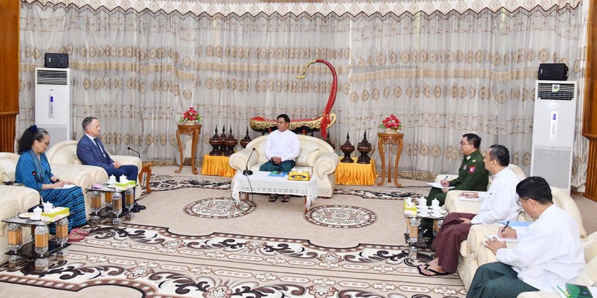 Member of State Administration Council Deputy Prime Minister Union Minister for Defense Admiral Tin Aung San received Mr. Marcoluigi Corsi, United Nations Resident and Humanitarian Coordinator ad interim (UN RC/HC ai) at the Ministry in Nay Pyi Taw in the morning on 4th September.
