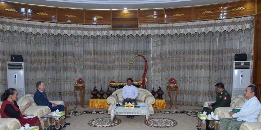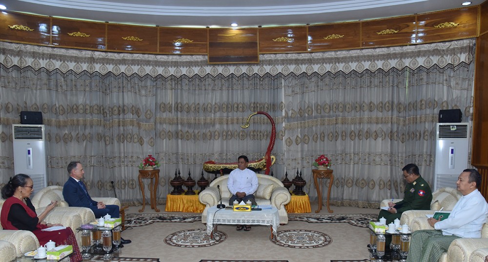 At the meeting, they cordially exchanged views on the matters of implementing Public Military Service Law and the temporary displacement of UN Agencies’ staff in Rakhine State. The meeting was also presented by the officials together with the Union Minister.