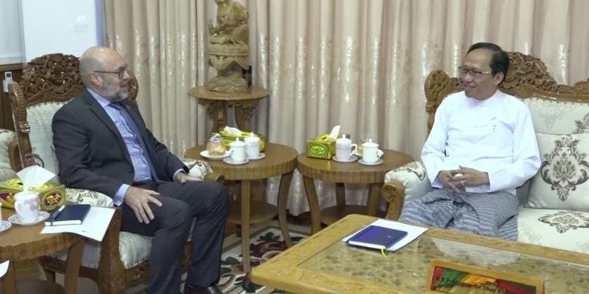 Union Minister for Health, Dr. Thet Khaing Win, received Mr. Jaime Nadal Roig, the UNFPA Resident Representative to Myanmar, at the reception hall of the Ministry in Nay Pyi Taw on December 3rd.