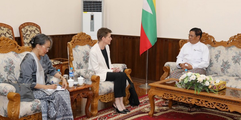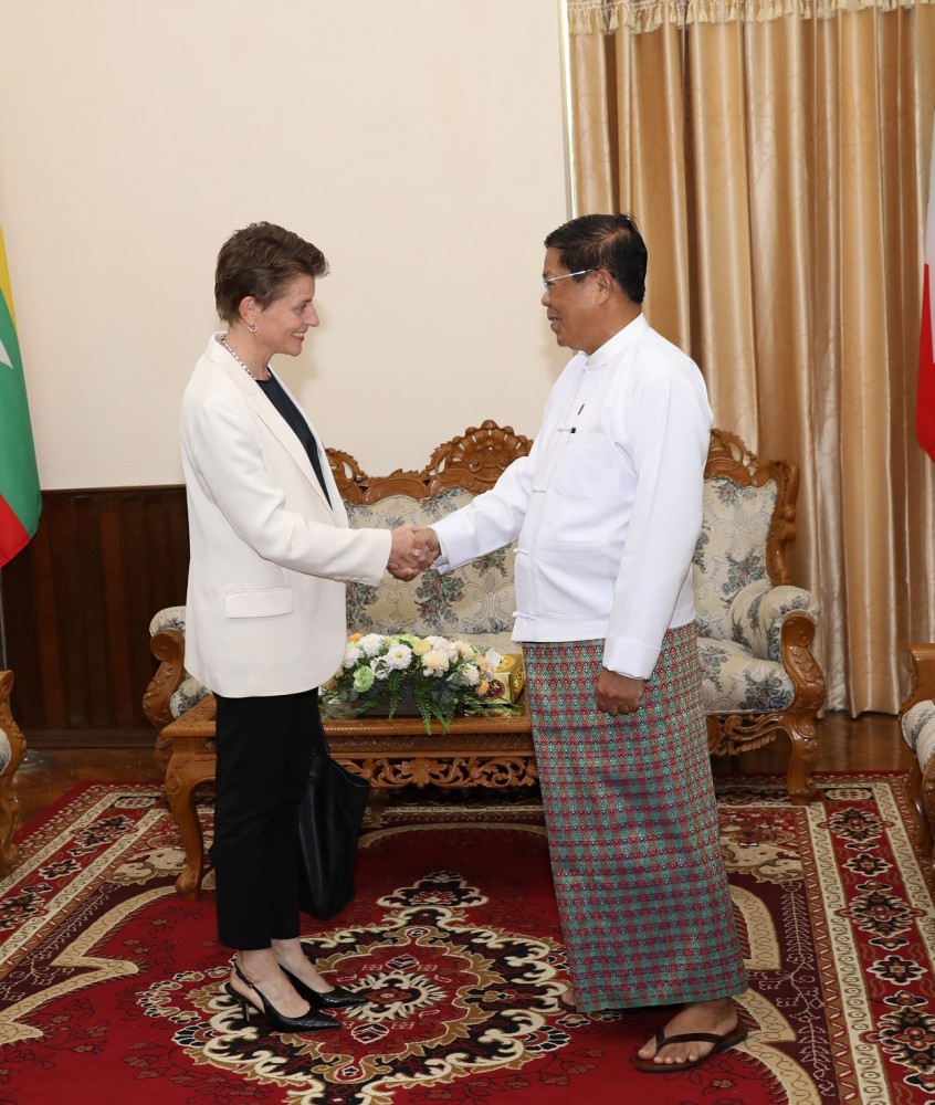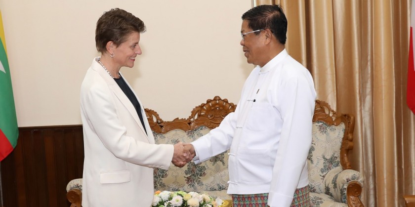 U Than Swe, Union Minister for Foreign Affairs received Ms Gwyn Lewis, United Nations Resident and Humanitarian Coordinator a.i. (UNRC/HC a.i.), at 10 AM on 22 October at the Ministry of Foreign Affairs in Nay Pyi Taw.